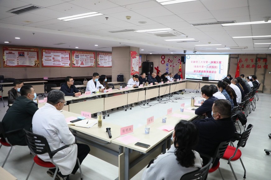 为弘扬中华传统优秀文化和良好家风,传播新时代中国特色社会主义核心价值观理念,11月25日下午,学校一附院在门急诊七楼中会议室召开家风家政教育座谈会。一附院党委书记杨立新、党委副书记刘群红、纪委书记桂德黎及一附院机关重点科室、部分临床科室代表及家属参加会议并座谈。会议气氛融洽,深情纯朴,效果优良。