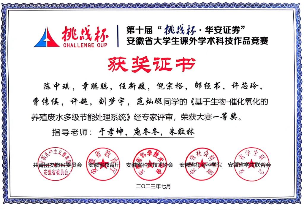 陈中琪大学期间主持国家级大创项目,撰写申请专利,参加学科竞赛,制作实物展示模型,每一项工作都要尽自己所能做到最好。开始撰写申请专利时,因经验和技能不足,多次被驳回申请,这项他从未接触且具有巨大挑战的工作,让他沮丧过,但这并没能打退他挑战自己的决心,在学院老师的帮助和他自己的努力下,陈中琪大一便授权国家专利证书,之后更是授权国际发明专利证书。“前不久的‘挑战杯’安徽省决赛期间,面对其作品实物模型功能展示不完善问题,他有时候会和团队成员一直安装调试设备模型到深夜3-4点,连续坚持了近一个星期,作品最终拿到了金奖。陈中琪就是这样一个不惧失败、不畏困难、不怕吃苦、敢于挑战的学生,作为项目的指导老师(他口中的冬哥),被他的那份坚定毅力所折服。”庞冬冬老师对陈中琪这样评价到。