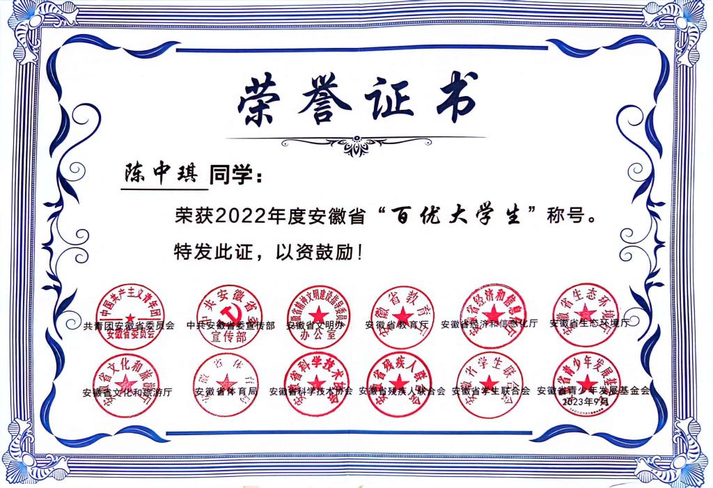 绽放奋斗光芒,激扬青春力量——记2023年度安徽省“最美大学生”陈中琪