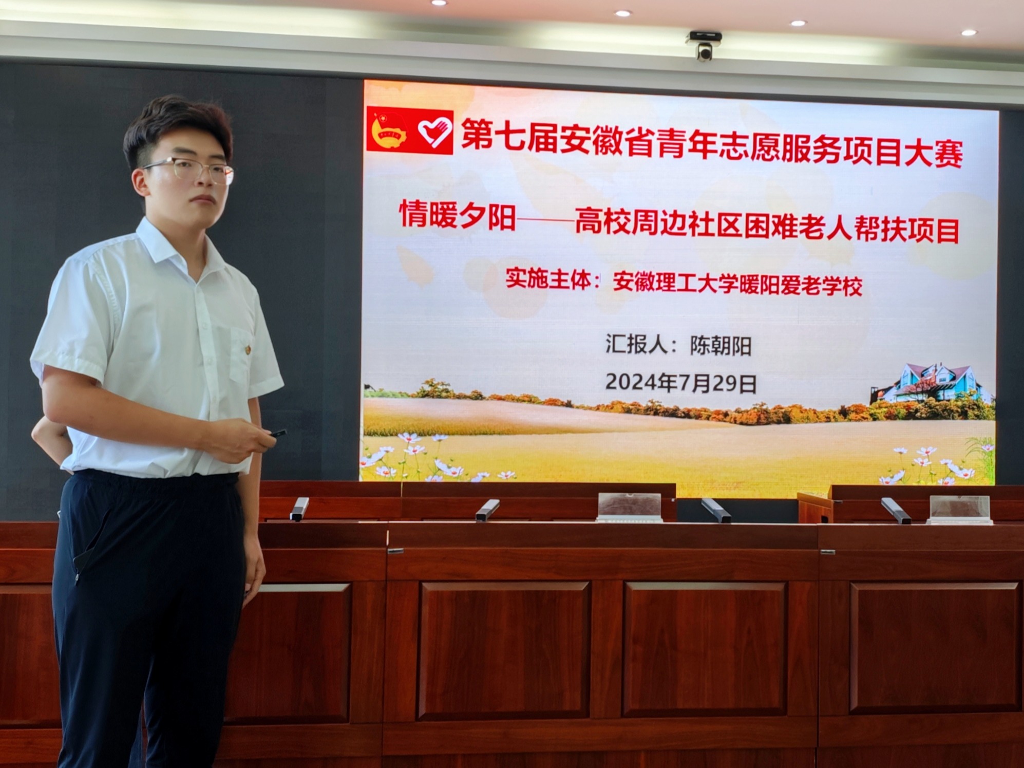 陈朝阳,化工与爆破学院2021级弹药工程与爆炸技术专业本科生。暖阳爱老学校第八任团长,大学三年绩点排名全班第一,获校一等奖学金、二等奖学金和“中哲”奖学金,优秀学生干部标兵等荣誉,申报国家志愿服务团队2项,开展帮扶老人50余次,建立帮扶中心3个、合作机构4家,提供培训教学20余场,服务老人超百人,参与人数200余人次,筹集爱老公益基金12800余元;组织其他志愿服务活动10余次。他将志愿服务实践孵化为创新创业项目,获批国家级大学生创新创业训练计划公益创业项目1项、获评安徽省“挑战杯”红色专项三等奖。事迹被人民日报客户端、《农民日报》《安徽日报》等媒体报道。陈朝阳获评安徽省志愿服务类“百优大学生”称号。