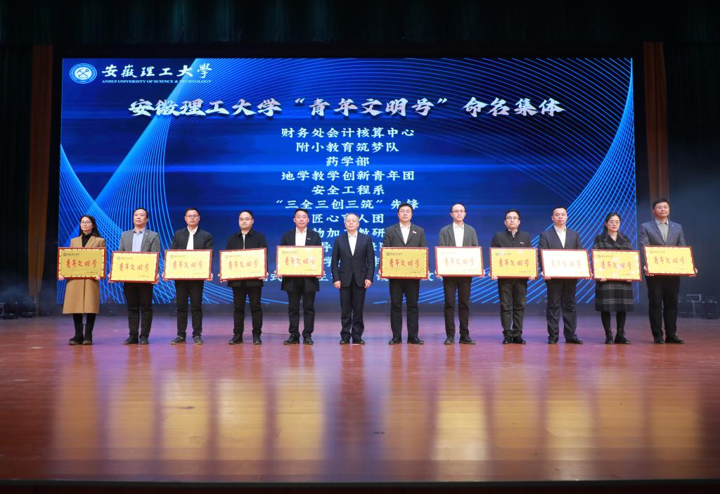 活动现场还颁发了安徽省“十佳百优”大学生、校第七届校园“十佳青年”、第十九届大学生“科技创新节”、第二十届“文化艺术节”优秀组织单位,2024年度共青团思想政治引领与基层团组织建设工作先进集体、共青团实践育人工作先进集体、2024年度“红旗团委”、“青年文明号”创建单位等荣誉。
