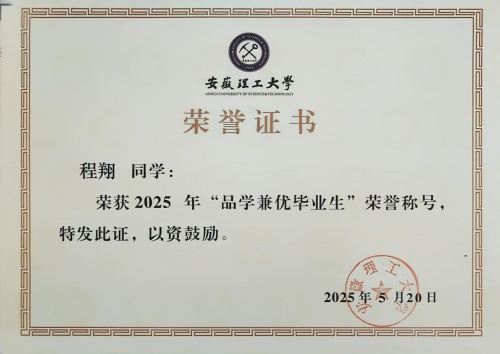 程翔勤思好学,成绩优异。大学四年始终秉持严谨求学的态度,制定清晰目标与阶段计划,确保学习高效有序。课堂专注听讲,积极互动,课后及时梳理巩固。尤为可贵的是,他能充分利用碎片化及课余时间,拓展知识边界,使其理论基础日益扎实,实践能力稳步提升。
