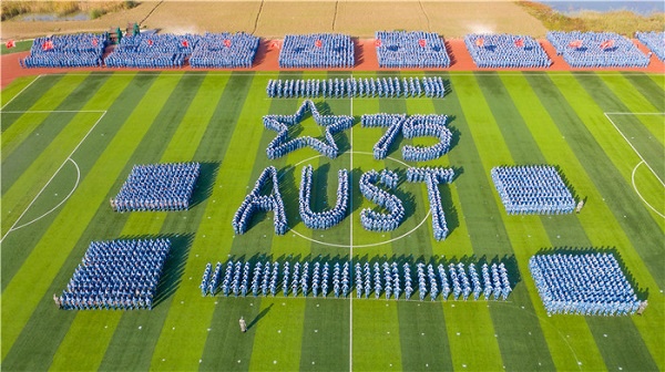 伴随着现场学生组成的方阵摆出“10、9、8、7……”数字倒计时字样,军训汇报表演正式开始。由900名学员组成的花样操方阵摆出“我爱安理工”“团结、奋进、博学、奉献”“75周年”“AUST”等字样,表达了2020级新生对安徽理工大学无比的热爱和对学校建校75周年华诞最真挚的祝福。伴随着雄壮的阅兵进行曲,在国旗、校旗方队的引领下,由16个学院2020级学生组成的军训团方阵,迎着朝阳,迈着整齐矫健的步伐,依次通过主席台接受检阅。他们坚定的神情、飒爽的英姿、整齐的队列、嘹亮的口号充分展示了军训刻苦训练取得的骄人成果,赢得在场师生的阵阵掌声。汇报表演精彩纷呈,在随后进行的匕首操、军体拳、格斗术表演中,军训学员们目光坚定,动作整齐划一、刚健有力,一招一式间尽显披荆斩棘的壮志与豪情;韵律操表演,青春朝气,展示了大家蓬勃向上的精神风貌;精彩的手语操表演表达了同学们对祖国深深的爱。