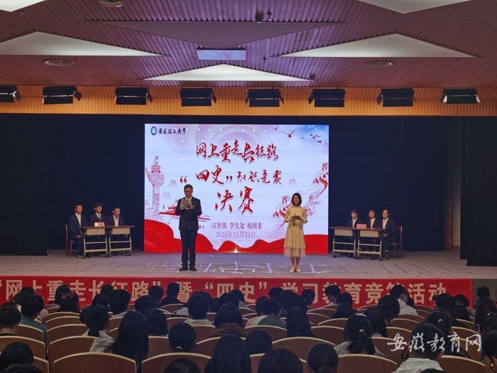 为巩固“四史”学习成效,展现学生青春风采,近日,安徽理工大学党委宣传部、学生处、校团委在钻石剧场举办了以“知史明理、铸魂育人”为主题的四史知识竞答活动决赛。