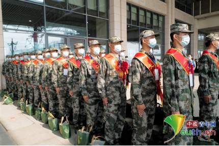 新兵列队集合准备离开家乡奔赴军营。李龙龙 摄