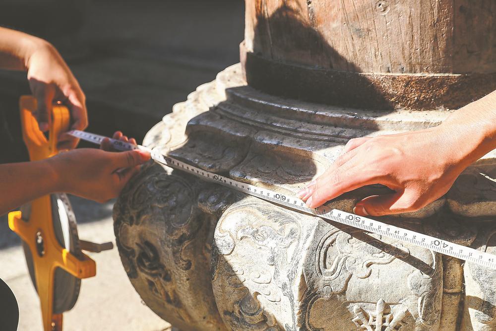 ◀ 7月15日,“倾筑”服务团的同学们对古建筑进行图像数据采集。