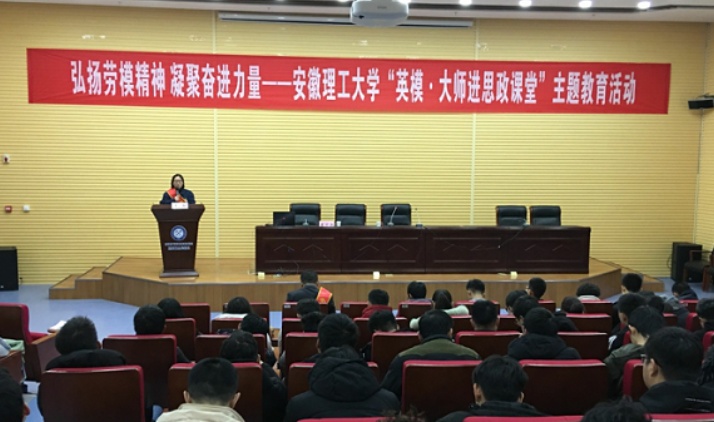 为深入贯彻落实《中共安徽省委教育工委关于在全省高校组织开展新时代先进人物进校园推进“英模•大师进思政课堂”活动的通知》精神,12月27日下午,全国劳动模范曹学涛和汪敏走进安徽理工大学,在国家重点实验室报告厅给同学们带来了一场劳模精神宣讲会。全校300余名师生聆听了报告。