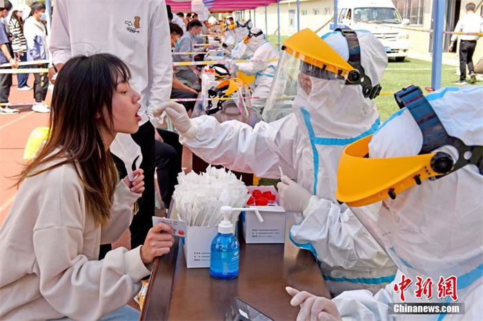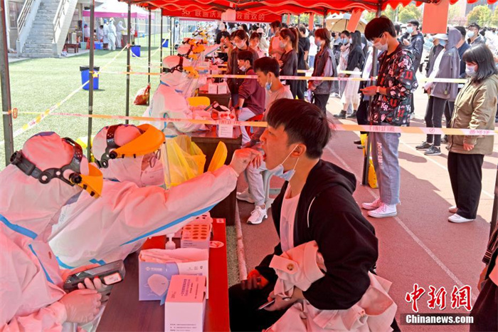 安徽理工大学32000余名师生在进行第六轮全员核酸检测。 陈彬 摄