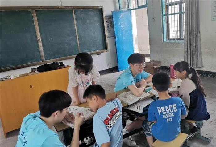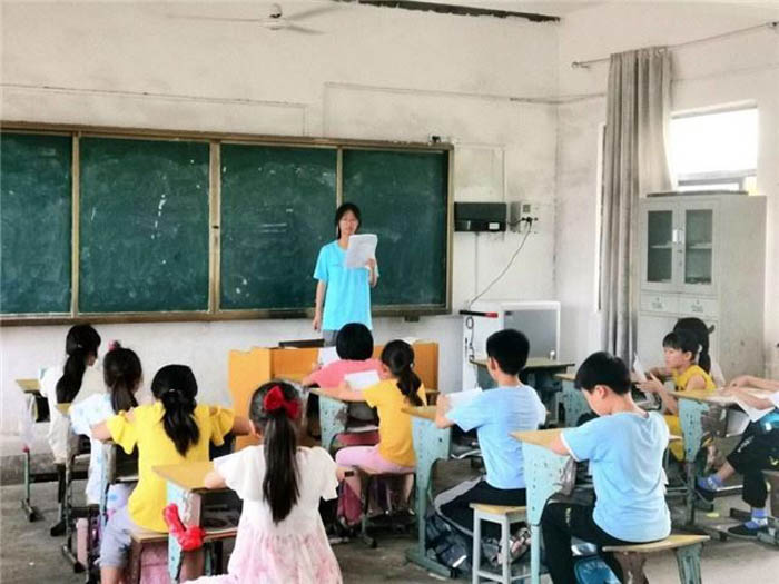 6月22日下午,志愿者们开展了集体教学辅导活动,过程中发现大部分孩子的基础比较薄弱,他们从小跟着爷爷奶奶长大,缺乏家庭亲情辅导和帮助。于是志愿者们组成“哥-姐班”,与孩子们达成学业联盟,帮助孩子们学习课本上的文化知识和生活趣事中蕴含的道理。