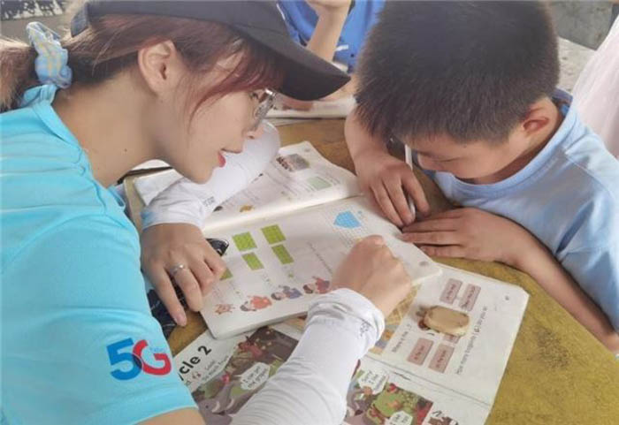 图为志愿者给孩子们辅导作业。通讯员 陈中琪 摄