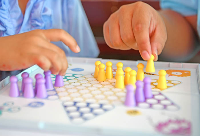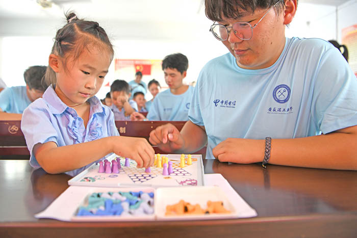志愿者与孩子们一起下棋。陈彬摄