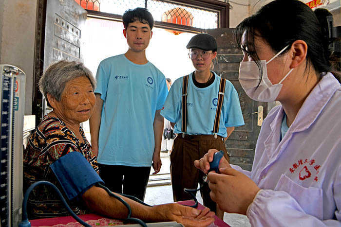 为老人进行健康义诊。陈彬摄