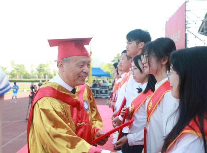 郭永存、袁亮等校领导为毕业生扶苏拨穗