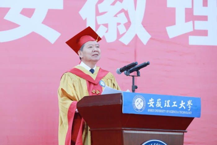 在热烈的掌声中,袁亮作了热情洋溢的讲话。他代表安徽理工大学向顺利完成学业的毕业生致以热烈祝贺,向辛苦养育同学们的父母、悉心培养同学们的老师表示衷心感谢!