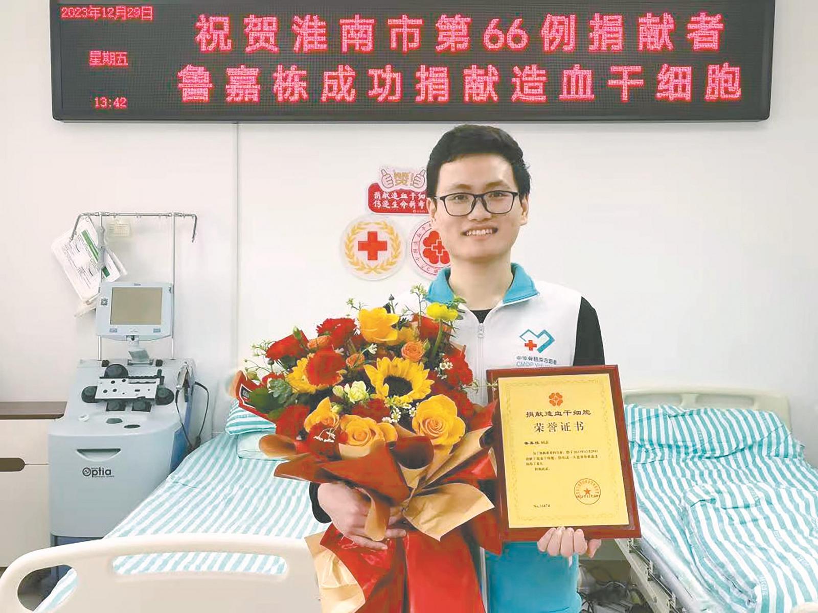 “考研结束了,我想到的是,赶紧去救人!”2023年12月29日,安徽理工大学计算机科学与工程学院大四学生鲁嘉栋说。当日,在安徽省立医院经过近5个小时造血干细胞采集,他顺利捐献造血干细胞挽救省外一血液病患者的生命,成为安徽理工大学第24例造血干细胞捐献者。